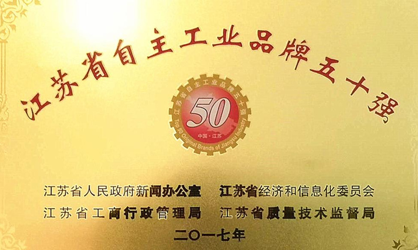 太阳集团tyc4633名列2017年度江苏省“自主工业品牌五十强”第三十七名